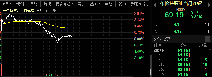 在上述承诺发出之时,国际油价也由高位滑落。布油由最高的71美元上方跌到69美元左右。
