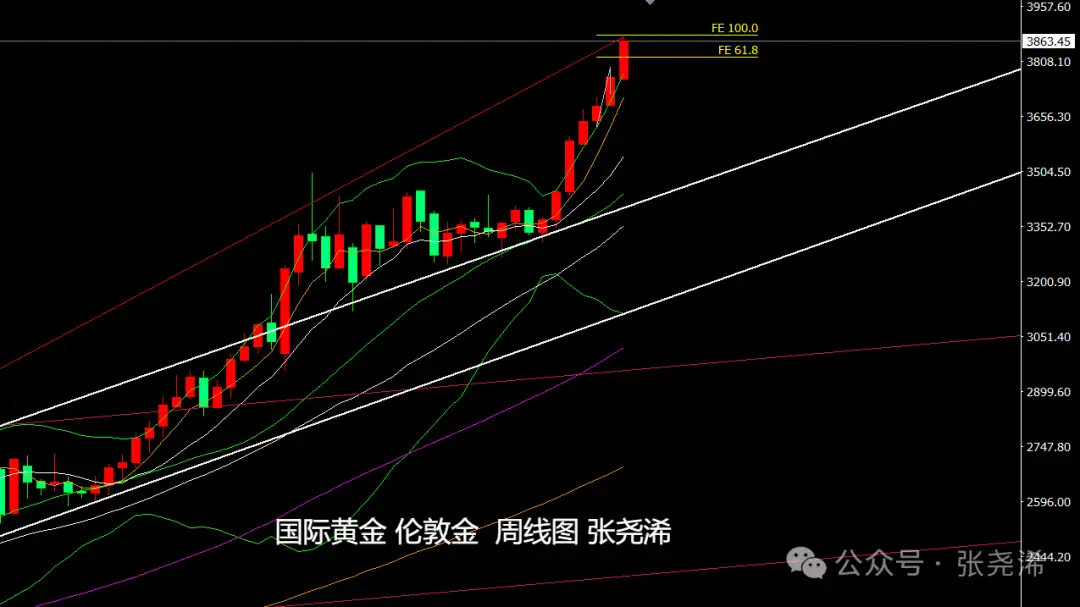 周图,金价自去年开涨攀升以来,如期第4次回踩中轨线支撑,并再度向上攀升,且不断触及给出的看涨目标位,目前依托布林带上轨支撑连续走强,当下虽冲出布林带之外,并也如期触及给出的看涨目标位附近,有阻力回撤风险,但根据前几周表现和指标信号来看,回撤力度也有限,整体走强趋势未有减弱迹象,操作将继续保持看涨上行不变。